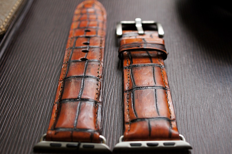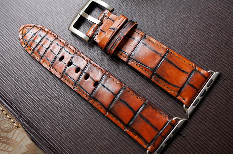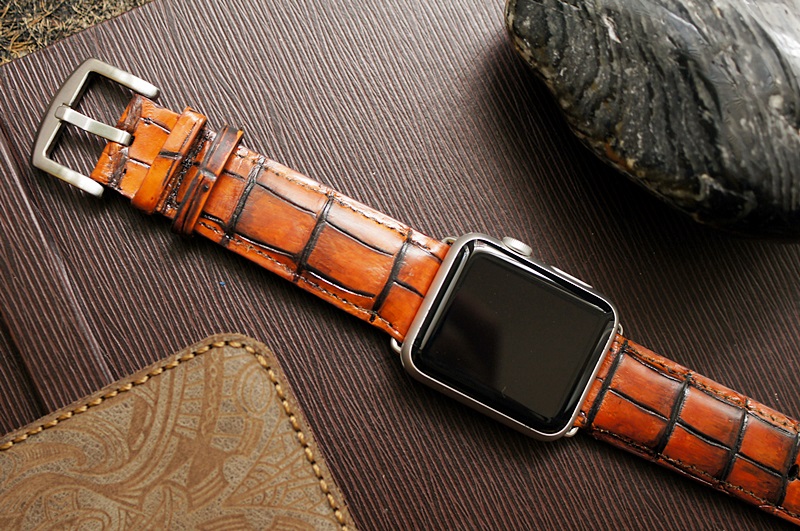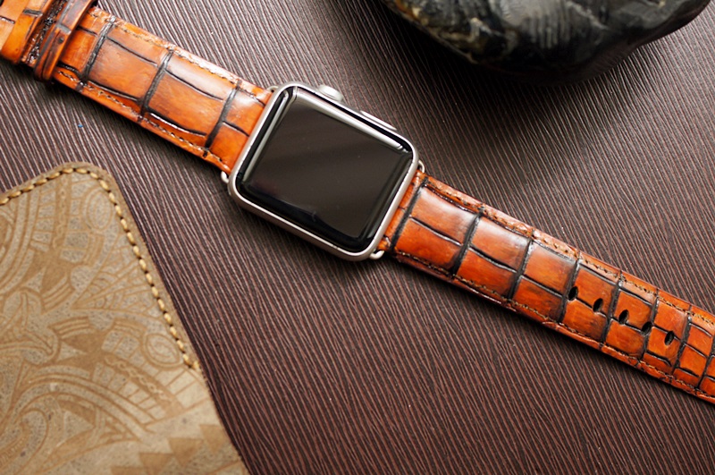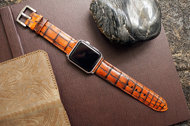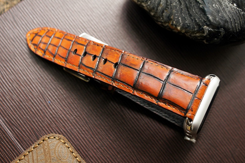 Cá sấu cam đen 49 – Dây đồng hồ Cá Sấu thật cho Apple Watch 1 and 2 (Apple Watch Sport) size 38mm và 42mm
