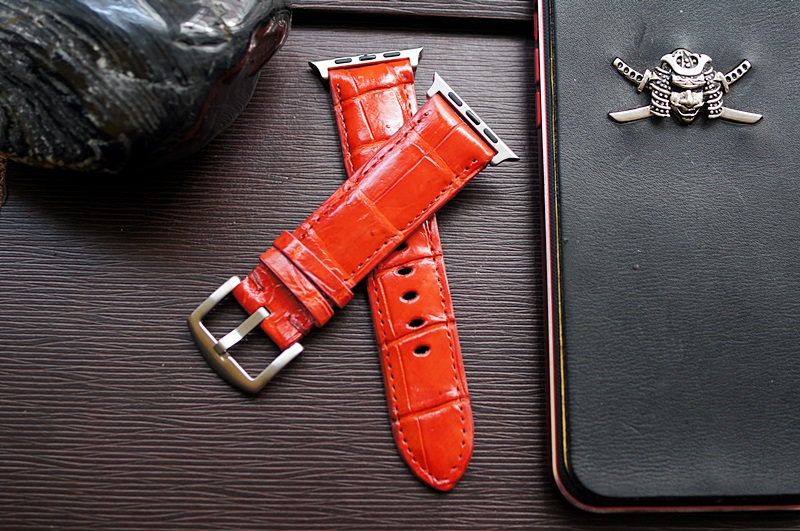 Cá sấu đỏ 3 – Dây đồng hồ Cá Sấu thật cho Apple Watch 1 and 2 (Apple Watch Sport) size 38mm và 42mm