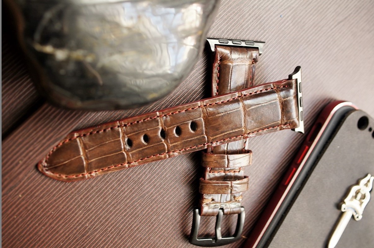 Cá sấu nâu đất 4 – Dây đồng hồ Cá Sấu thật cho Apple Watch 1 and 2 (Apple Watch Sport) size 38mm và 42mm