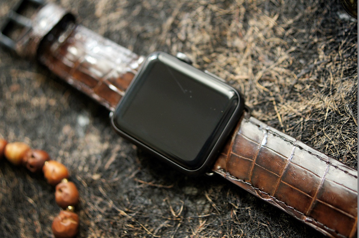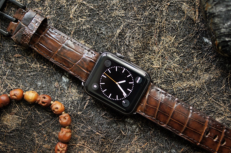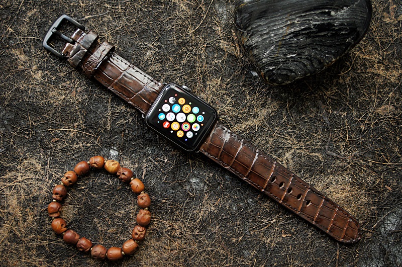 Cá sấu nâu đất 50 – Dây đồng hồ Cá Sấu thật cho Apple Watch 1 and 2 (Apple Watch Sport) size 38mm và 42mm