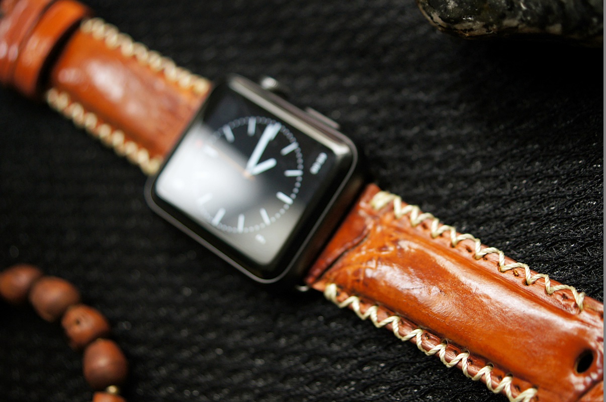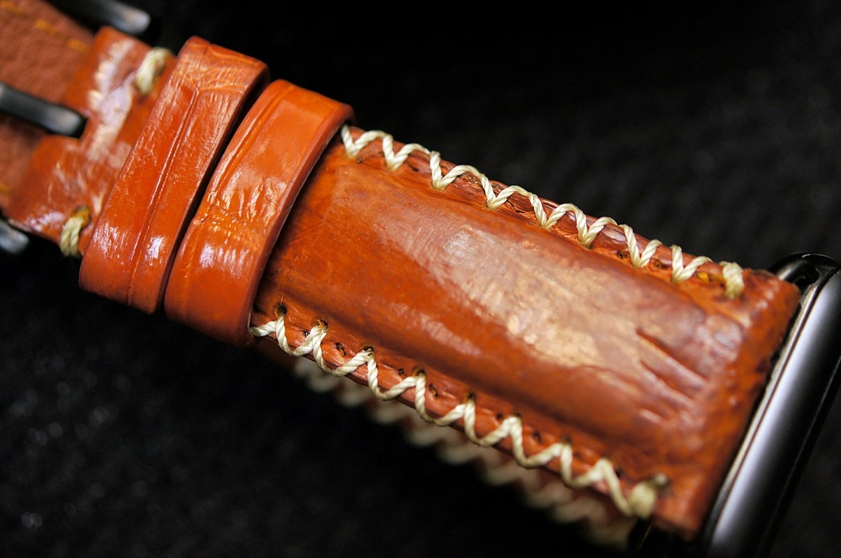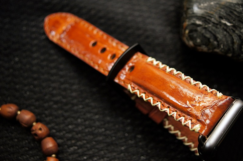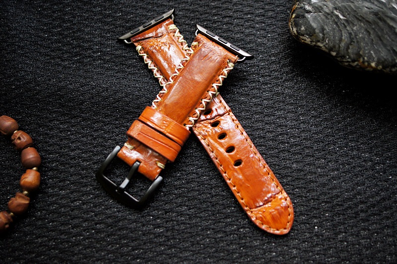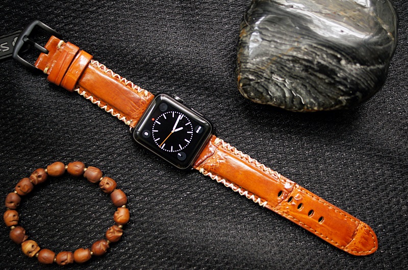 Cá sấu vàng bò 49 – Dây đồng hồ Cá Sấu thật cho Apple Watch 1 and 2 (Apple Watch Sport) size 38mm và 42mm