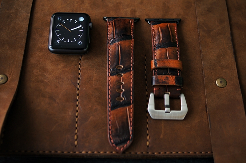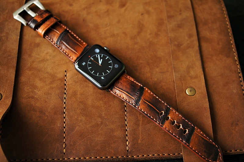 Cam- vẽ Patina – Dây đồng hồ Cá Sấu thật cho Apple Watch 1 and 2 (Apple Watch Sport) size 38mm và 42mm