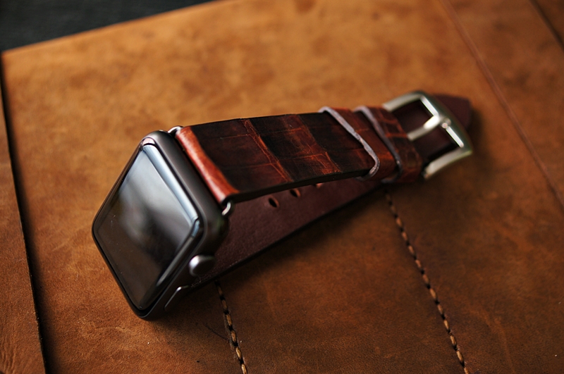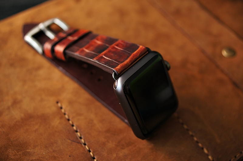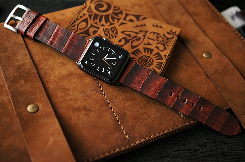 Nâu Đỏ – Dây đồng hồ Cá Sấu thật cho Apple Watch 1 and 2 (Apple Watch Sport) size 38mm và 42mm