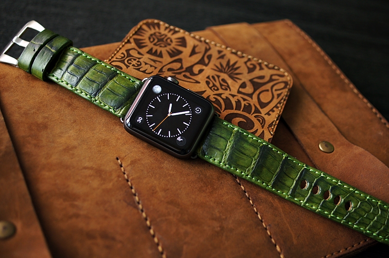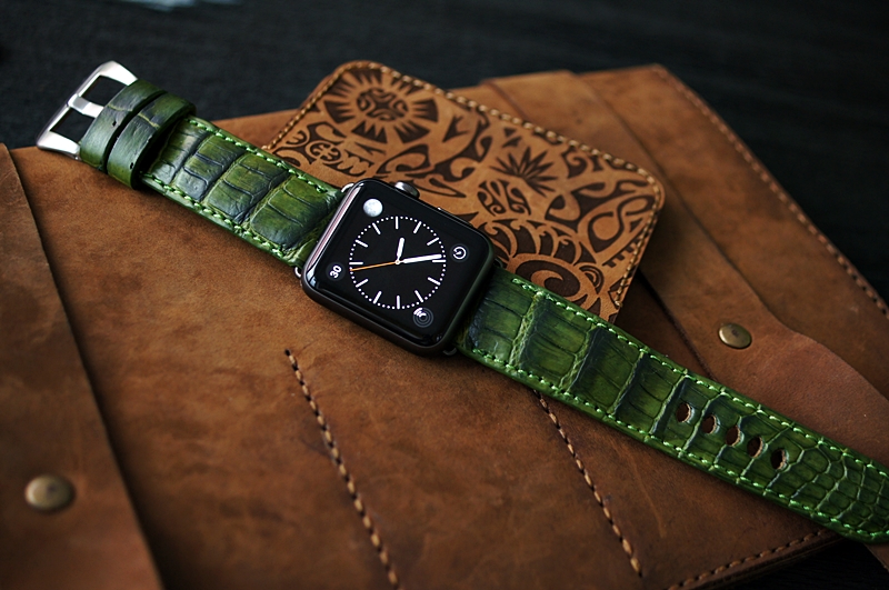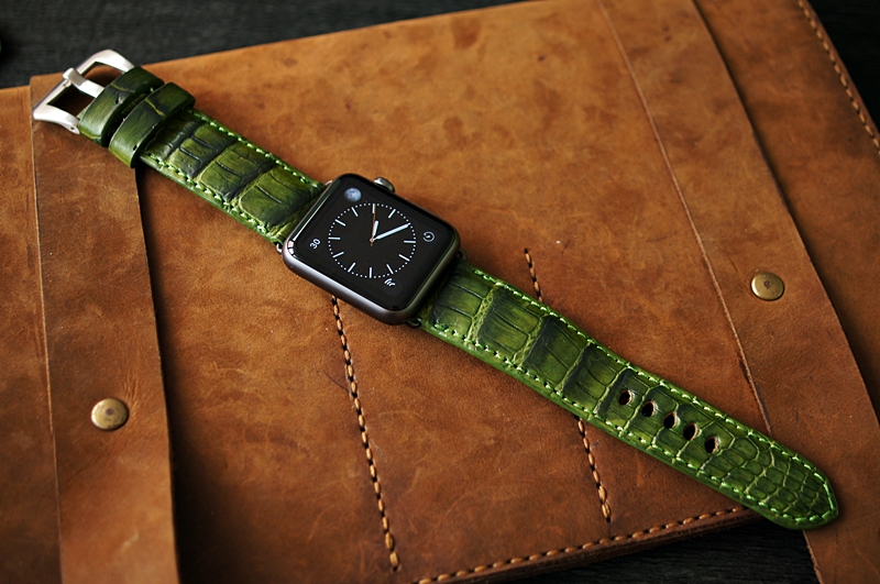Xanh Gecko Patina – Dây đồng hồ Cá Sấu thật cho Apple Watch 1 and 2 (Apple Watch Sport) size 38mm và 42mm
