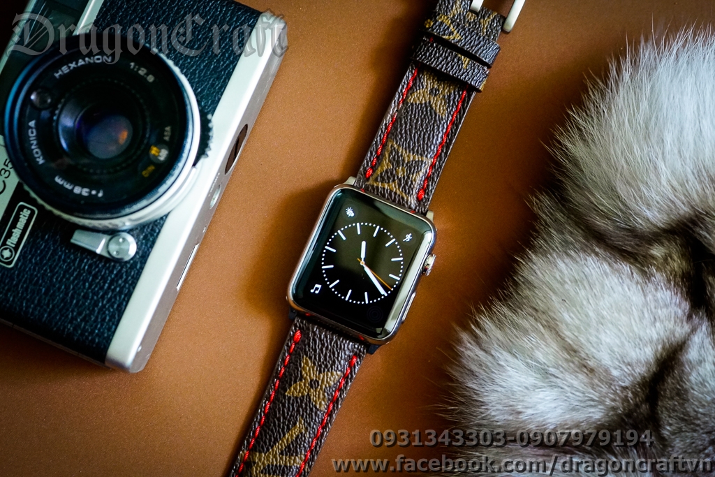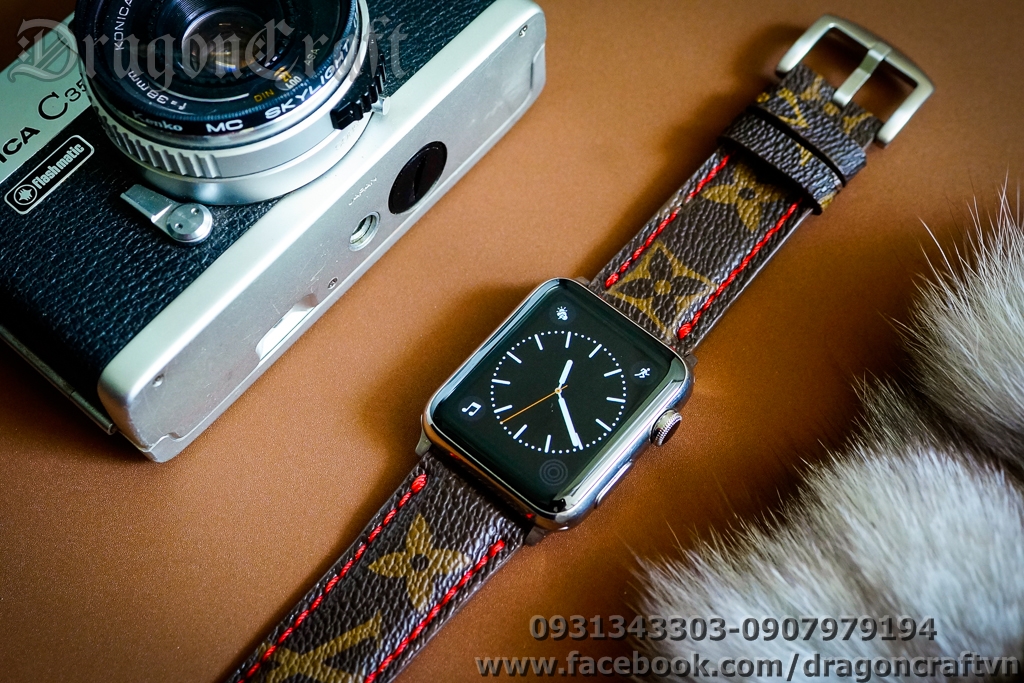Dây LV Custom For Apple Watch 1,2,3,4,5 - Monogram II - Red