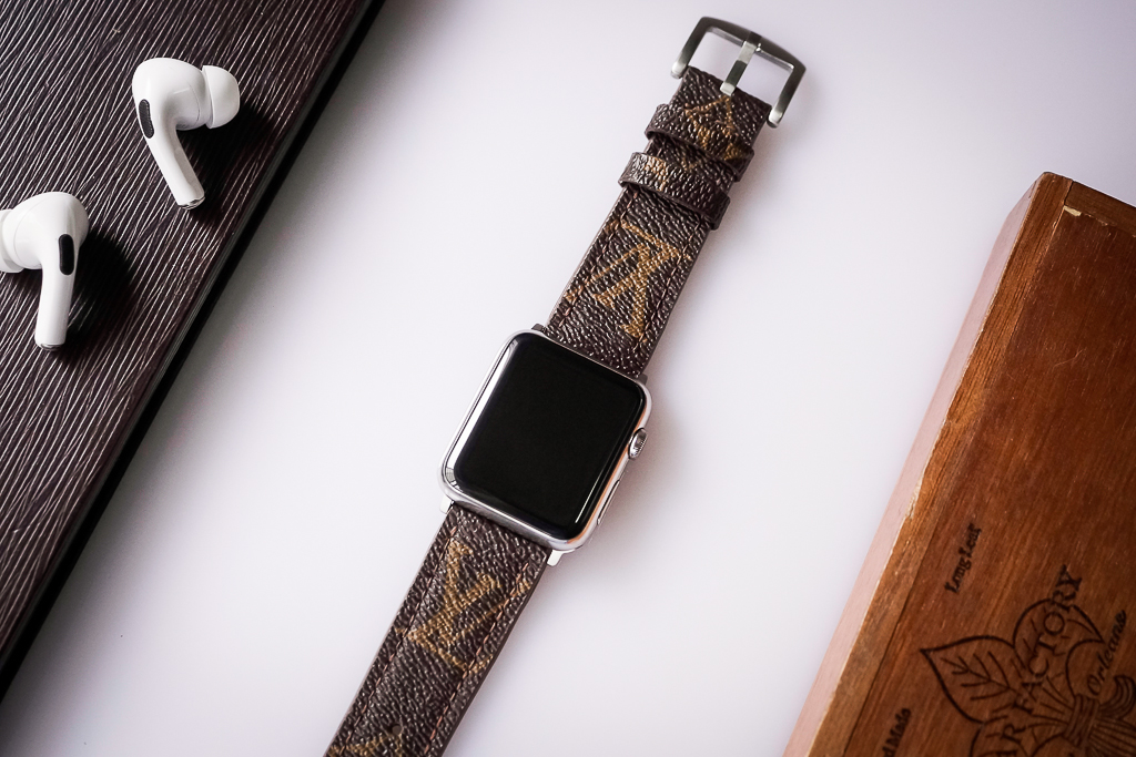 Dây đồng hồ BBR & LV – các mẫu da của những thương hiệu túi dành cho các loại đồng hồ. Khách hàng có thể chọn cho mình những mẫu Monogram cá tính hoặc Damier cổ điển, phối hợp cũng những trang phục làm toát lên vẻ lịch lãm, sang trọng của chủ nhân. Những chiếc túi được thâu từ khắp mọi nơi trên thế giới, qua bàn tay của thợ thủ công lành nghề đã mang một hơi thở mới, tái sinh một lần nữa qua những sản phẩm dây đồng hồ, wallet,… Một bộ sản phẩm bao gồm: dây da, adapter, khoá thép phù hợp với các dòng apple watch 1,2,3,4,5 …
