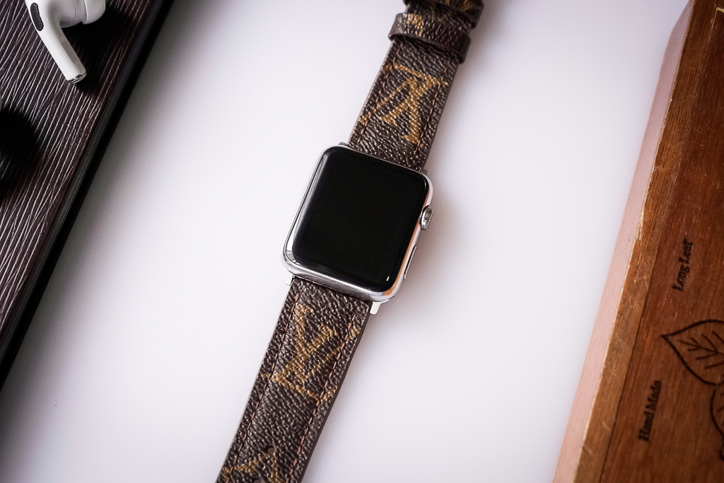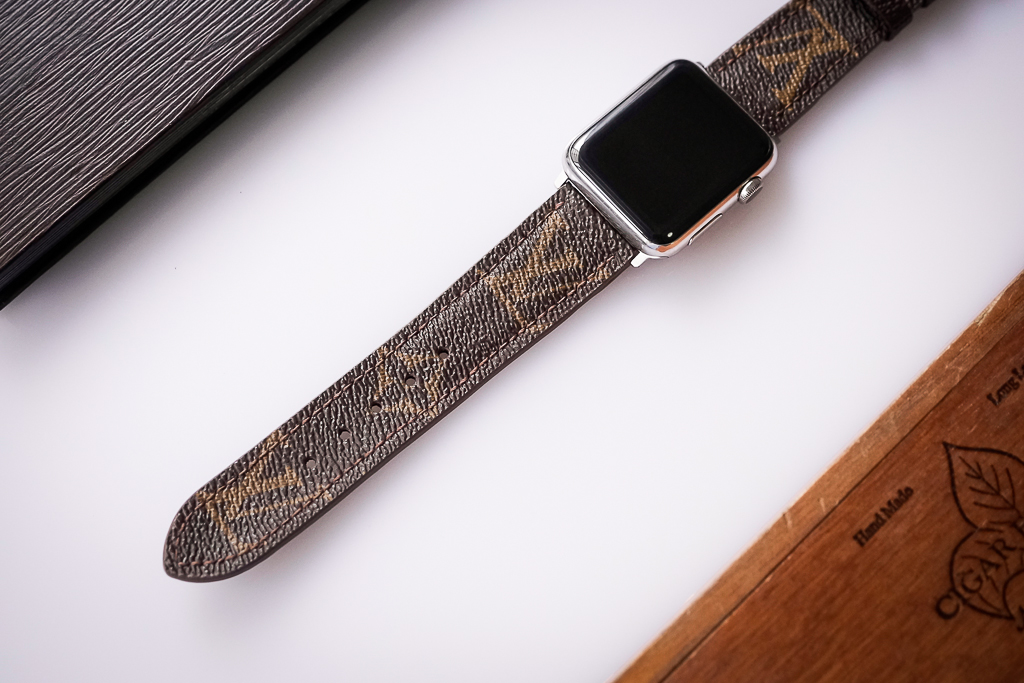 Dây đồng hồ thủ công handmade giành cho Apple Watch Series 1,2,3,4,5,6,7,8,9,SE cắt túi LV chính hãng – LV Monogram