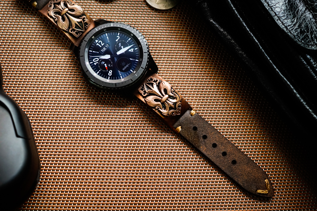 Dây Mặt Fleur De Lis – Đồng Đỏ – Nền Trơn- Dây handmade cho Samsung Gear S3/ Galaxy Watch