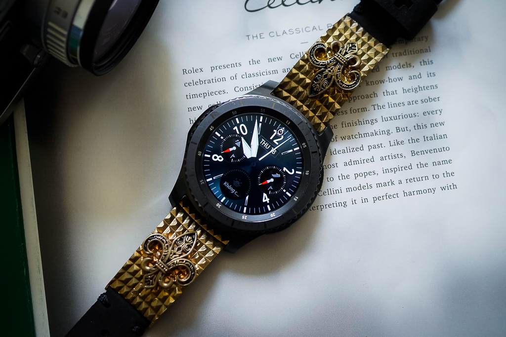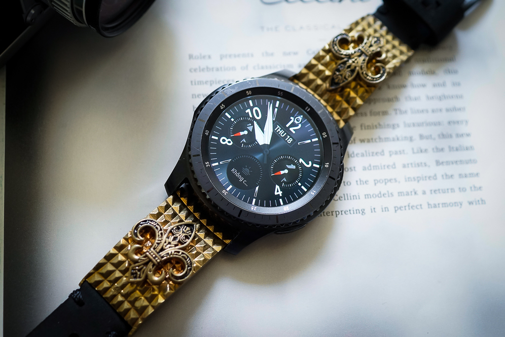 Mặt đeo hơi cong uốn theo cổ tay nên tạo cảm giác thoải mái cho người đeo . Ưu điểm : không thấm mồ hôi tay, cá tính , ôm khít tay nhờ đoạn dây da