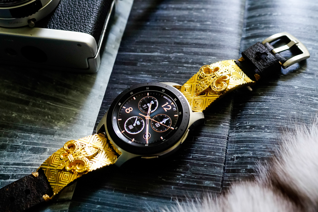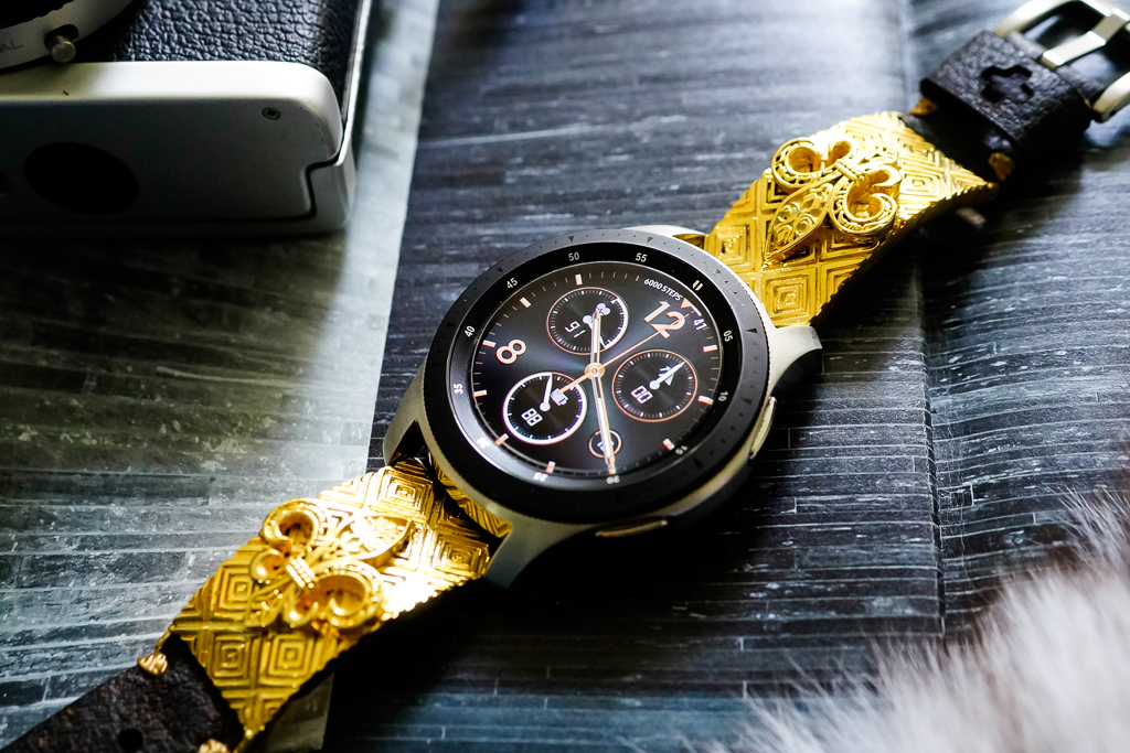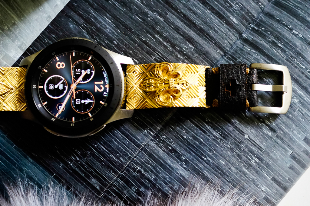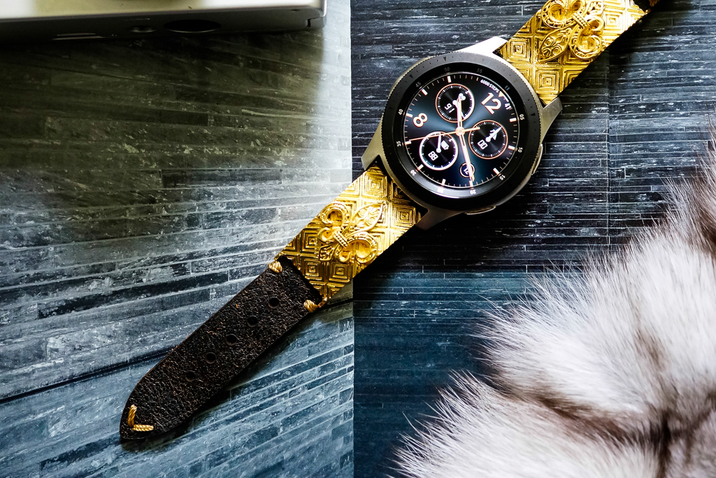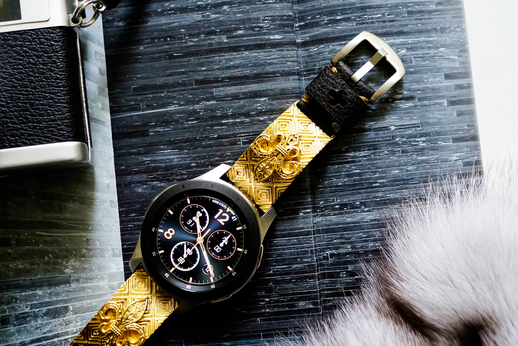 Dây Mặt Fleur De Lis – Xi Vàng – Nền Caro- Dây handmade cho Samsung Gear S3/ Galaxy Watch