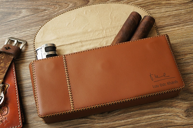 – Bao da đựng Cigar của Dragoncraft chất liệu Da Bò ( Da thật 100%)