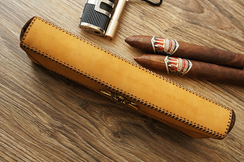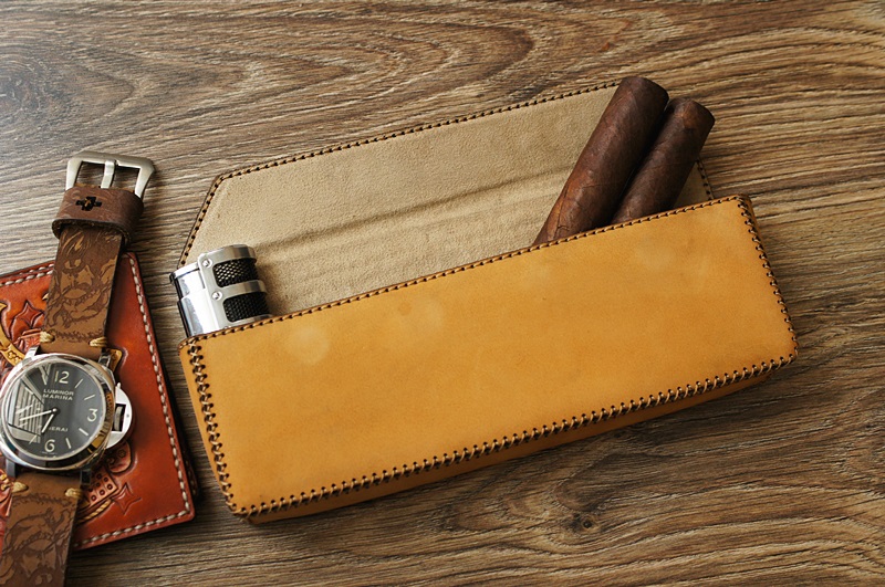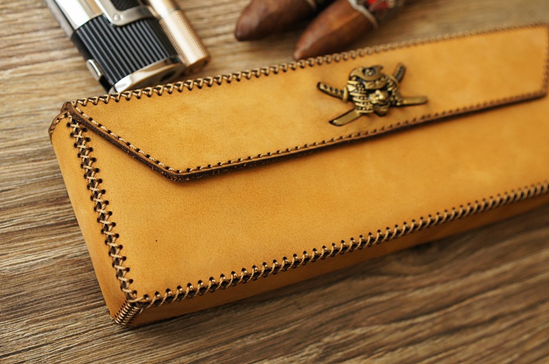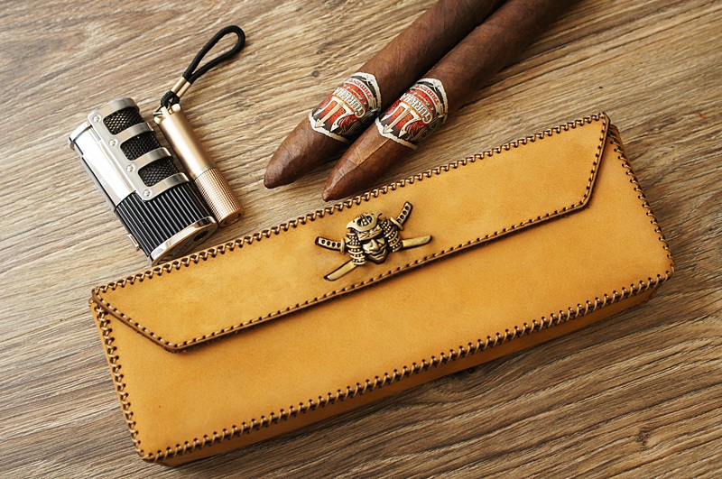 – Bao da đựng Cigar của Dragoncraft chất liệu Da Bò ( Da thật 100%) Hộp 2 điếu – giá 890.000đ Hộp 3 điếu – giá 1.090.000đ Hộp 4 điếu – giá 1.390.000đ ( có ngăn đựng đồ cắt và bật lửa ) – Mẫu Đính thêm Họa Tiết: Samurai, Hoa Ly, Kiếm, Cánh chim, Chữ Thập tròn +200.000đ cho mỗi họa tiết. – có thể khắc tên theo yêu cầu khách hàng – khách hàng có thể tùy chọn màu da và màu chỉ