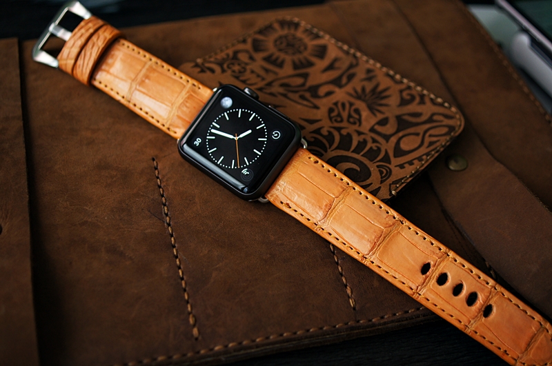 Cá Sấu Cam 2 - Dây đồng hồ Cá Sấu thật cho Apple Watch 1 and 2 (Apple Watch Sport) size 38mm và 42mm