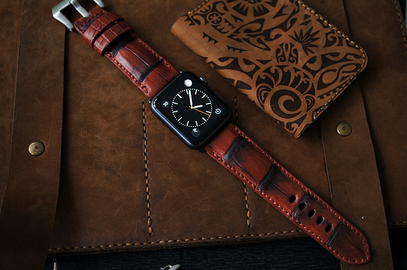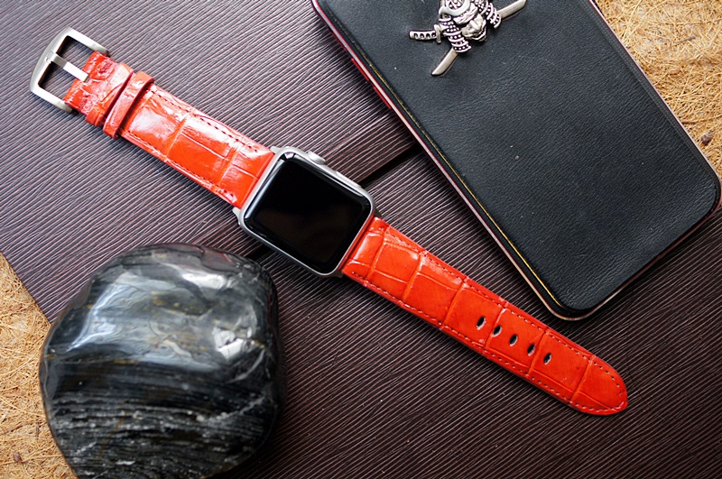 Cá sấu đỏ 3 - Dây đồng hồ Cá Sấu thật cho Apple Watch 1 and 2 (Apple Watch Sport) size 38mm và 42mm