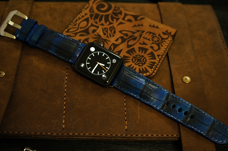 Xanh Blue- vẽ Patina - Dây đồng hồ Cá Sấu thật cho Apple Watch 1 and 2 (Apple Watch Sport) size 38mm và 42mm
