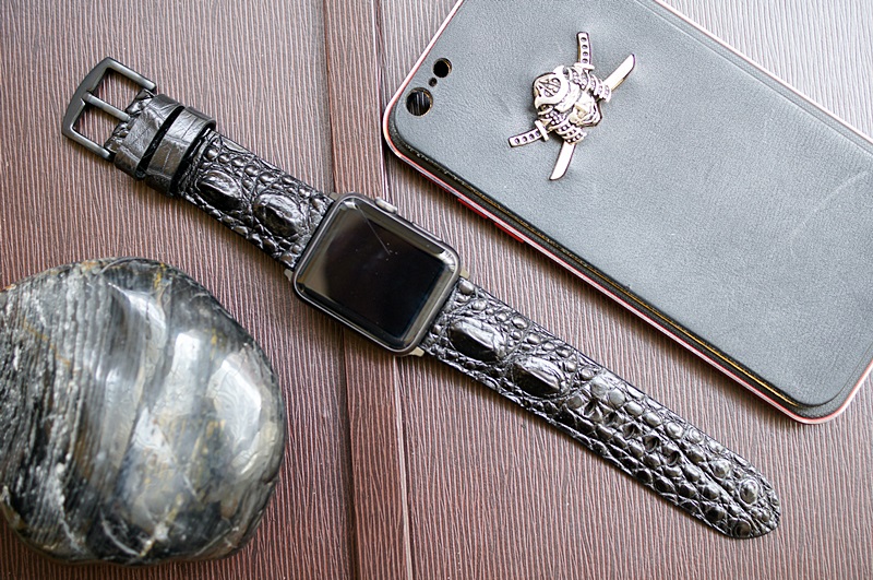 Gai đen 1- Dây đồng hồ Cá Sấu thật cho Apple Watch 1 and 2 (Apple Watch Sport) size 38mm và 42mm