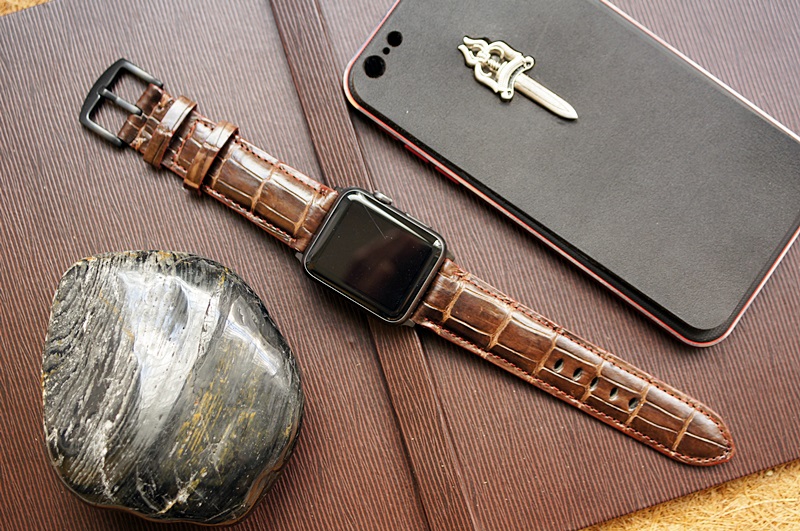 Cá sấu nâu đất 4 - Dây đồng hồ Cá Sấu thật cho Apple Watch 1 and 2 (Apple Watch Sport) size 38mm và 42mm